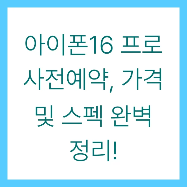 아이폰16 프로 사전예약, 가격 및 스펙 완벽 정리!